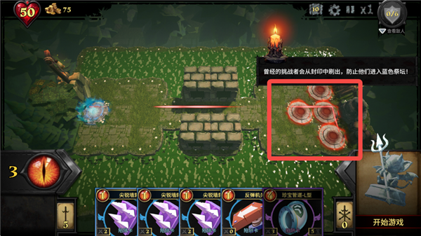 6、布置好后,点击石像开始游戏。