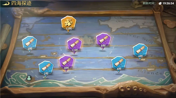 解锁四海探迹玩法后,船长可以派遣符合要求的英雄探索世界,以此来获得大量养成资源。如果遇到了金色品质的探索,还能获得派遣英雄的碎片哦。