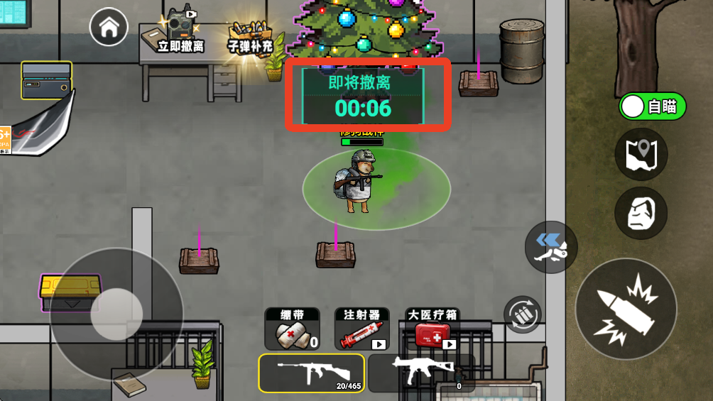 3、找到这个绿色的圈圈,这是撤离点。要注意,撤离点附近会与很多敌人,建议先把敌人击败再撤离。