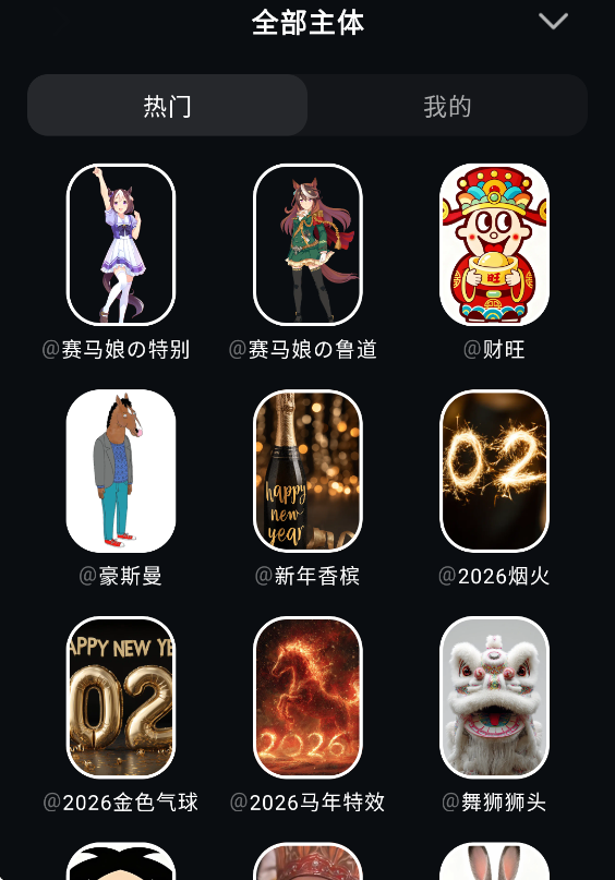 3、在全部主体里这里选择你的想要做的内容,可以是一个人或者主题。点击即可选择。