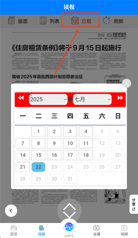 3、点击最上方的日期按钮,还可以选择往期任意时间的报纸。