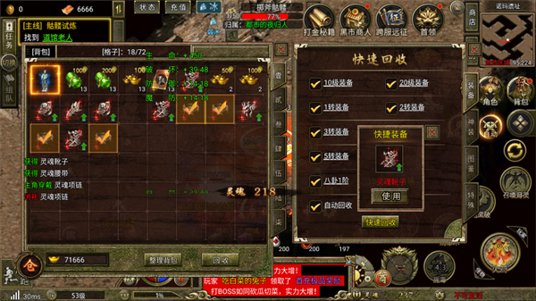 利用快速回收多余低阶装备,获得资源来增强战力。