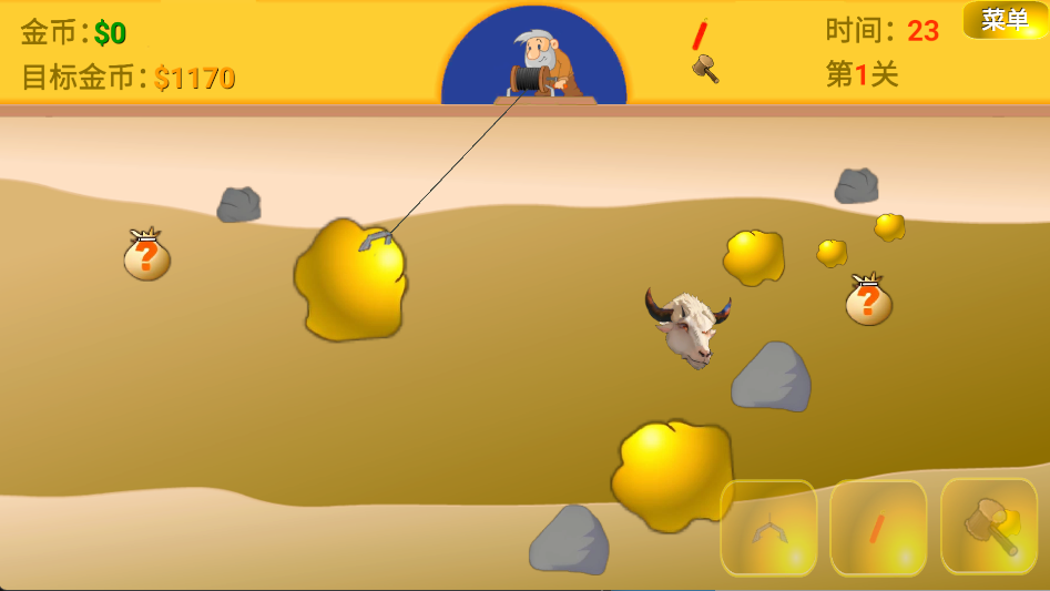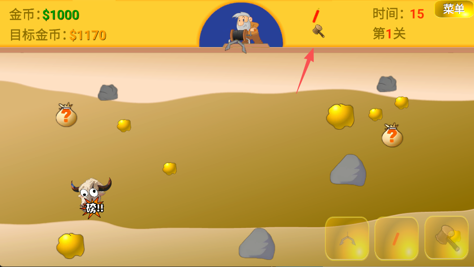 3、使用钩子抓取金矿时,牛头会随机进行干扰操作,玩家需精准把握时机,瞄准矿石,避免出现空钩浪费时间。