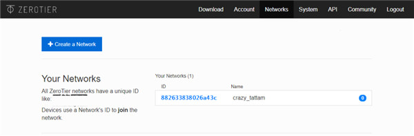 切换至Network,创建一个局域网,会自动获取一个独一无二的Network ID。所有设备都将通过这个ID加入网络