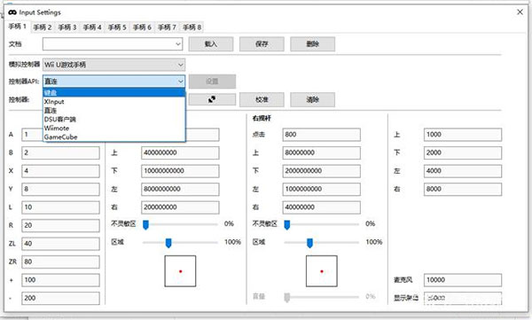 输入设置可选键盘,Xinput就是我们常见的手柄,直连,DSU协议客户端,Wiimote和GameCube手柄设备