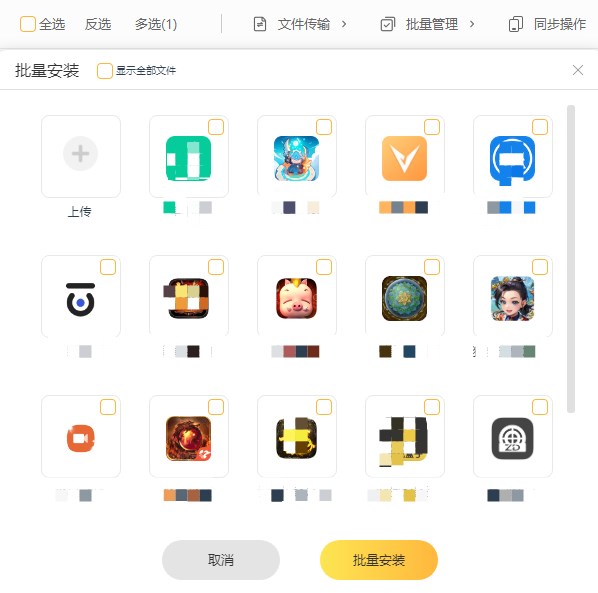 ②确定以后勾选好设备,然后再点击“文件传输”选择“安装应用”。