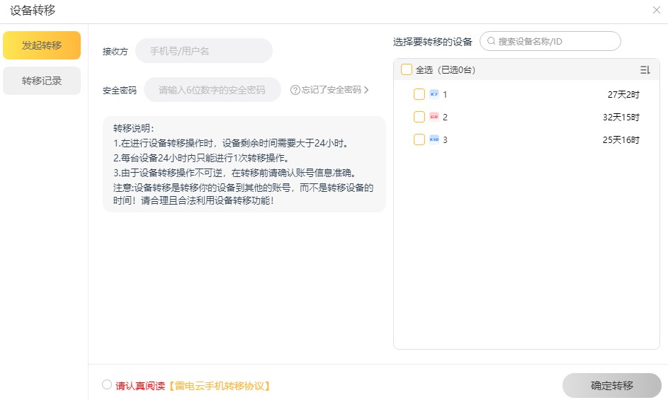 16、设备管理:可以进行设备转移、授权管理。