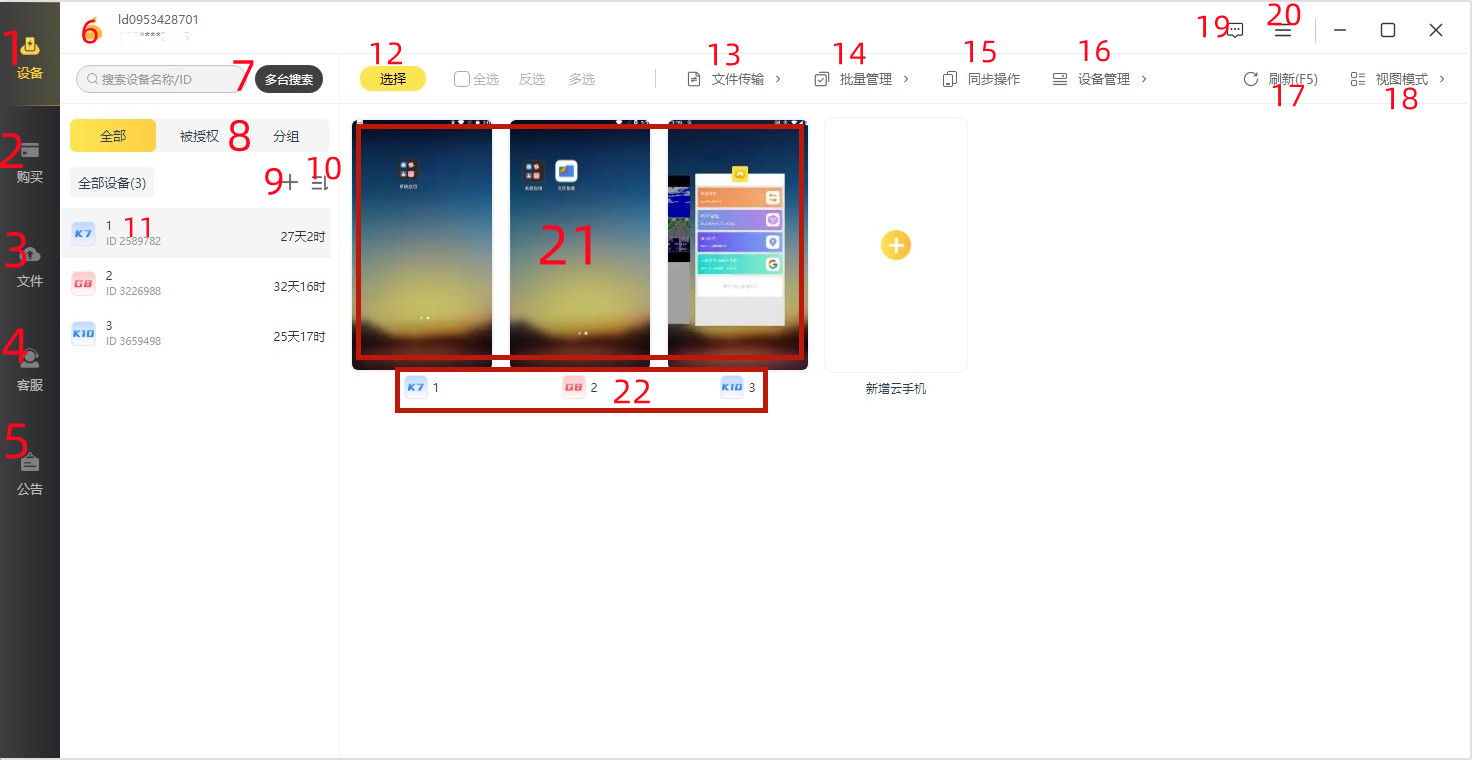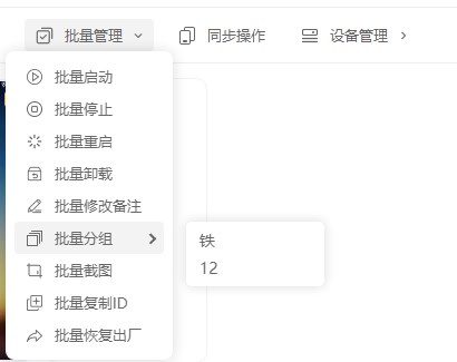 14、批量管理:可以批量停止、批量重启、批量截图等,方法和13一样,先选择设备,随后在点击要操作的功能菜单即可。