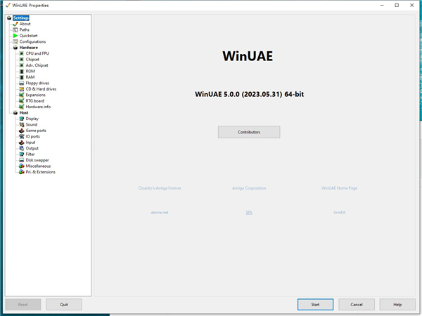 基础运行软件时的第一个屏幕是快速启动部分,它为您提供了一种极其简单的方法来配置您的仿真Amiga。只需选择您想要的阿米加车型强制启动只读存储器为了。为了您的方便,一个流行的阿米加车型对照表可在例子佩奇。