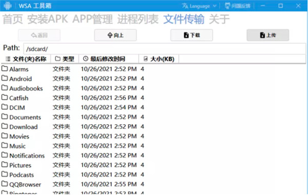6、WAS工具箱还有一个好用的功能,那就是打通安卓子系统与Windows系统之间的文件传输通道,让用户可以将安卓子系统 里的文件取出到Windows系统文件目录下,也可以将Windows系统文件传输到安卓子系统中去。