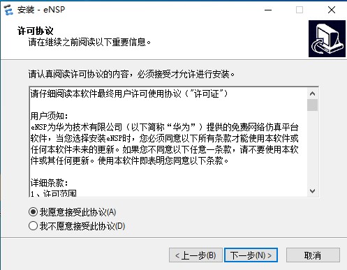 1、从本站下载华为eNSP模拟器客户端,默认中文安装即可