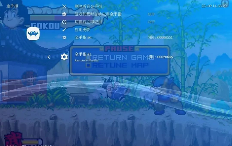 打开游戏后,记住你需要修改的数值,比如金钱数60再回到RetroArch菜单,进入设定/金手指。