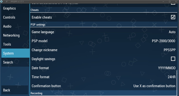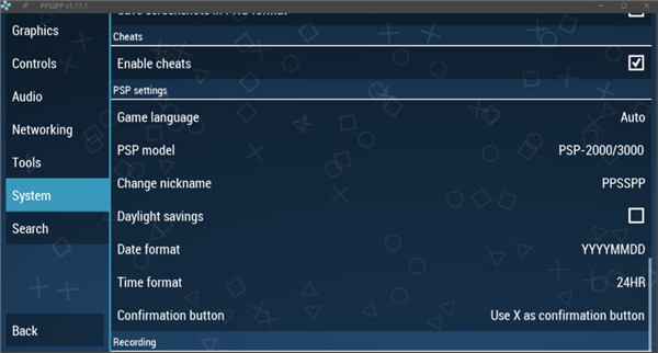 然后在ppsspp的设定界面找到cheats,勾选Enable cheats,就开启了金手指