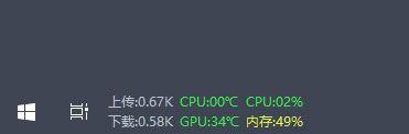 6、软件默认在任务栏右侧显示 CPU 使用率、内存占用情况以及网速。