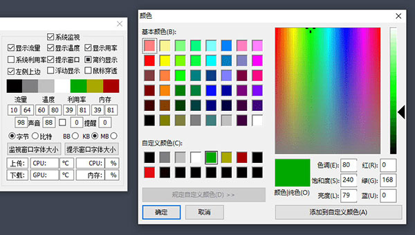 9、比如利用率在39以下时,默认颜色是绿色、达到39时颜色就会加重、达到81就会变成红色,以此来动态展示硬件状态。