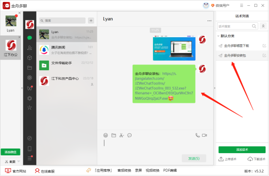 金舟多聊是一款款简单、易用的微信电脑P多开软件,支持多个微信账号同时登录,话术云端同步存储,可添加话术图片、表情等让交流更进一步管理更加便捷。金舟多聊软件采用专业的加密技术,安全性高、资源消耗低,可使用快捷键锁定多聊,防止个人隐私泄露,以及还有着在丰富的快捷键和一键式操作,令用户人爱不释手!
