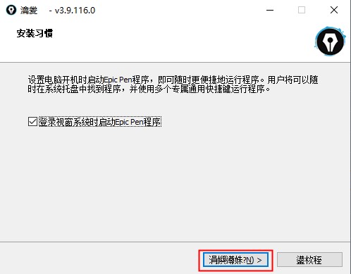 2、设置安装习惯,不需要开机自启就无需勾选。