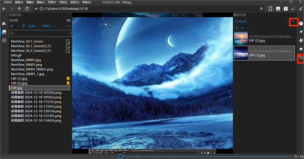 有趣的是当我们打开一个文件夹,点击顶部地址栏右边的 “左右” 图标,它底部的进度条滑动快可以像书本一样选择 “左开” 或 “右开”,左右拖动进度条或者鼠标单击和双击,分别对应上一张图片和下一张图片,而顶部地址栏右边的数字按钮表示的是 1 页面显示和 2 页面显示,说白了就是 A4 纸和 A3 纸的区别。