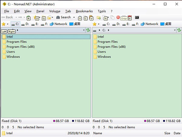 1、两面板视图。每个面板都可以显示文件,文件夹树以及快速的文件预览或驱动器信息。