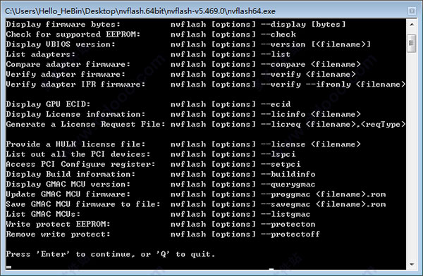 5、显示BIOS版本:nvflash --version filename;