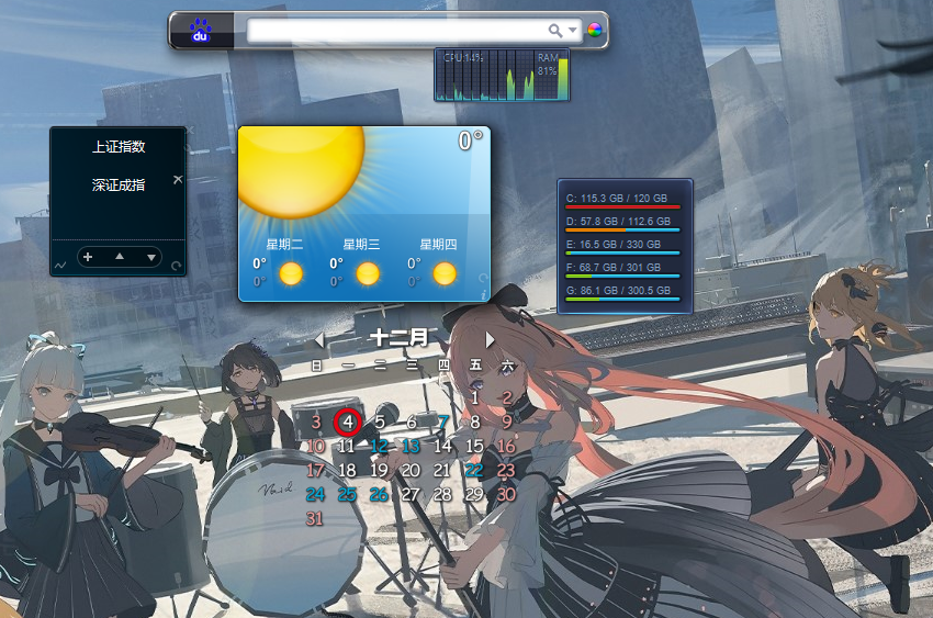 小巧、精致、半透明的镶嵌在桌面背景中