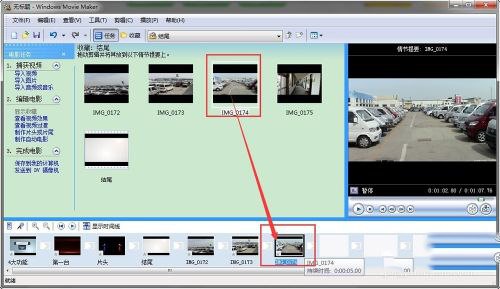 4、Movie Make选择下一项(在时间线轨道上、情节提要上或在“内容”窗格中) 右箭头键