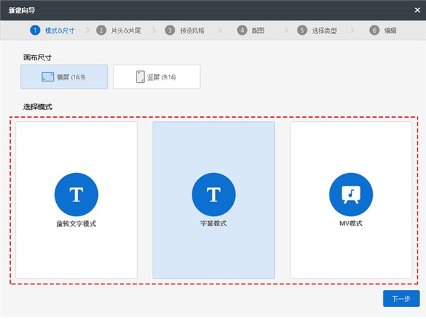 万彩微影字影模块提供三种视频模式:旋转文字模式,字幕模式,MV模式