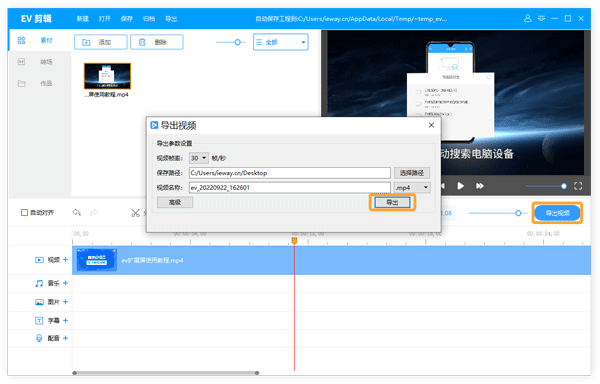 EV剪辑官方电脑版是一款功能全面的视频剪辑工具,体积小巧不占内存,界面简洁无多余干扰,操作门槛极低,无论是新手还是有基础的用户都能快速上手。EV剪辑支持视频拼接、自定义水印添加、任意位置截断裁剪等核心功能,无需复杂设置,拖拽操作即可完成基础剪辑需求。从日常 vlog 剪辑、短视频制作,到简单的后期处理,都能高效满足,告别繁琐操作,让视频创作更省心。EV剪辑能够带来简单、高效、无负担的剪辑体验,是用户的优质选择。