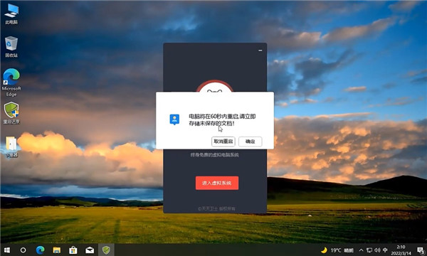 4、进入之后就可以选择重启系统开始使用啦,会提示重启系统生效,我们可以关闭,也能够立即重启;