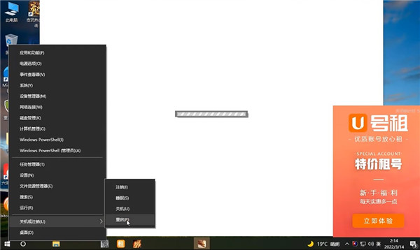 10、电脑有点顶不住了,赶紧的直接重启,大家可以看到,现在时间是21点14分,我们重启;