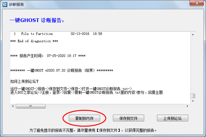 遇到任何问题,均可通过到论坛求助,发贴时注意:必须详细描述故障现象(屏幕提示),回复时,请复制“一键GHOST诊断报告.txt”里的全部内容后粘贴,以供大家帮助你分析原因和解决问题,也有利于软件的日后改进。