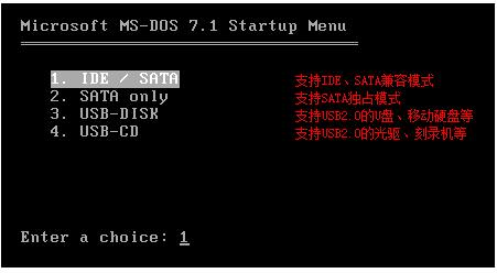 小提示:如果选择“U盘”或“移动硬盘”GHOST出错或无法运行,有可能是USB驱动模式不正确,请在MS-DOS二级菜单第1项或第3项之间切换,也有可能是“U盘”或“移动硬盘”第一分区的卷标没有设置成“GHOST”。