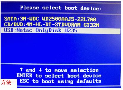 1、启动制作好的U盘(包括移动硬盘),开机或重启之前插入U盘。启动方法有两种: