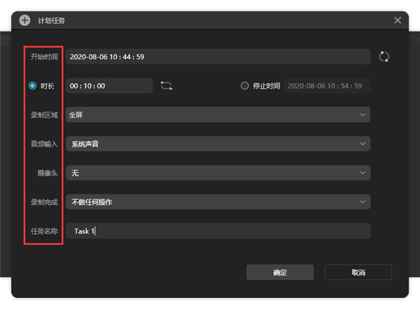 任务名称:输入新的录屏任务名称或使用默认名称。