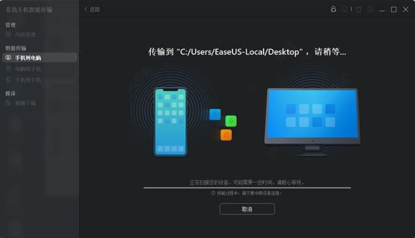 想在移动设备上看电影或听音乐吗? 首先,选定你的设备。其次,选择要传送的文件。最后,点击传输。易我手机数据传输是将文件从电脑传输到移动设备上最简单、快速的方法。