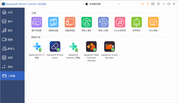 1、Apeaksoft iPhone Transfer可以将iPhone数据传输到电脑