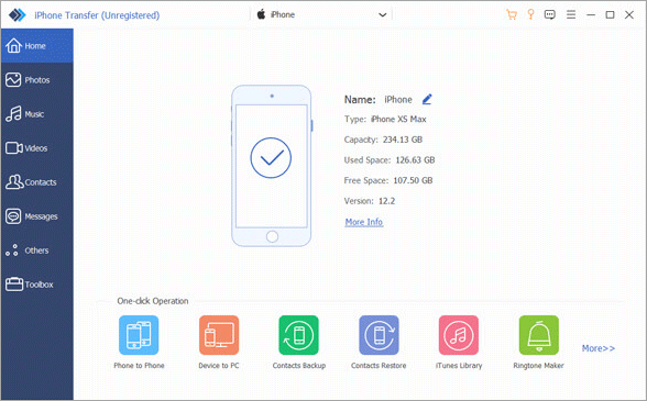 Apeaksoft iPhone Transfer是一款简单易用的苹果手机数据传输软件,软件可以帮助用户在iPhone,iPad和iPod上传输联系人,消息,照片,书籍,音乐,电影,铃声,语音备忘录等,让你可以自由的在电脑和iPhone之前传输文件,是目前优秀的iPhone/iPad/iPod等设备的传输数据替代方案。软件提供了直观清晰的操作界面,可以方便快捷的在ios、itunes和windows系统之间进行文件传输,并具有传输文件灵活、传输速度快的特点,同时还支持多种文件格式;该软件还具备了备份联系人、恢复联系人、查找重复等多种工具,为您带来完善的数据传输与管理解决方案,只需要将iPhone连接到本软件,就可以开始传输图片、视频、歌曲!