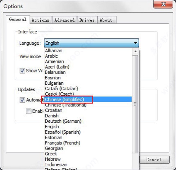 1、安装完成后,发现软件默认英文界面,点击Options;
