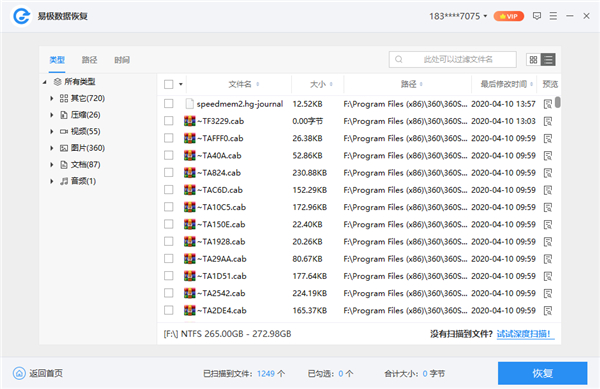 A:文件在丢失过程中,会存在部分文件损失的情况,因此不是任何情况下都能100%恢复。