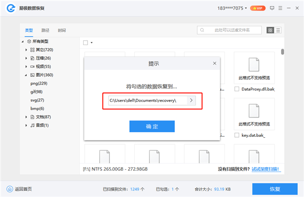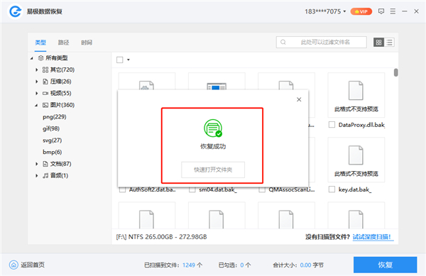 8、恢复成功后,在弹窗中选择快速打开文件夹,即可找到刚刚存放目标文件,到此,恢复完成。