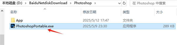 1、解压前退出电脑所有杀毒软件,然后双击运行【PhotoshopPortable.exe】;