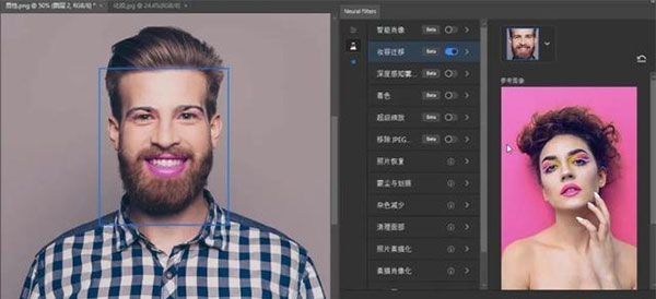 妆容迁移:只要打开一个化好妆的照片,就能让另一张照片上的人物立刻获得同款美妆效果。