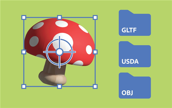 通过 Illustrator 可将 3D 对象导出为与 Adobe Substance 3D 和其他 3D 应用程序广泛兼容的 GLTF 和 USD 文件格式。可将资源导入到喜爱的 3D 应用程序中以编辑和增强这些资源。