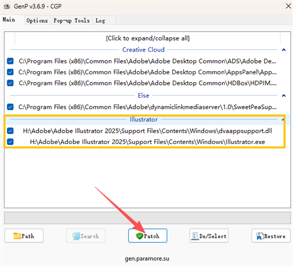 7、就可以看到需要激活的Adobe Illustrator 2025版本了,点击Patch进行激活;