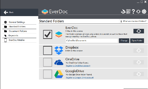 EverDoc自动检测并建立已建立的云服务提供商的索引。