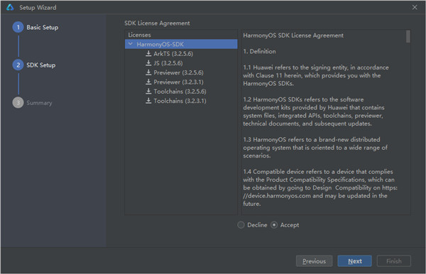 3、在SDK Setup界面,单击按钮,设置HarmonyOS SDK存储路径,单击Next进入下一步。