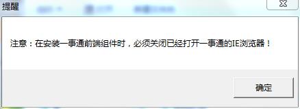 1、解压安装包,双击“AIOWSetup.exe”开始正式的安装2、弹出提示框,提示用户在安装一事通前端组件时,必须关闭已经打开一事通的IE浏览器,可直接跳过并点击“确定”
