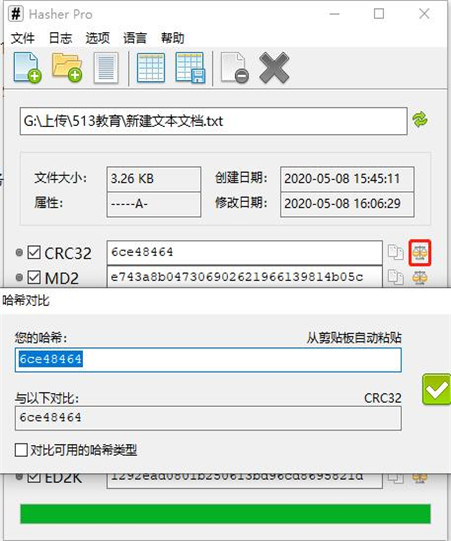 8、点击红框里面的图标,即可完成对哈希值的对比