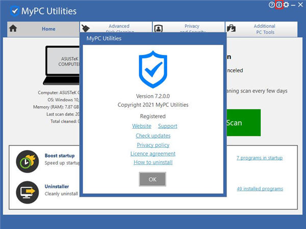 4、双击打开MyPC Utilities软件,点击红色选框,如下图软件破解完成,可以放心使用软件