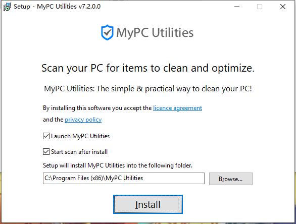 安装向导默认设置的软件默认安装路径为C:\Program Files (x86)\MyPC Utilities